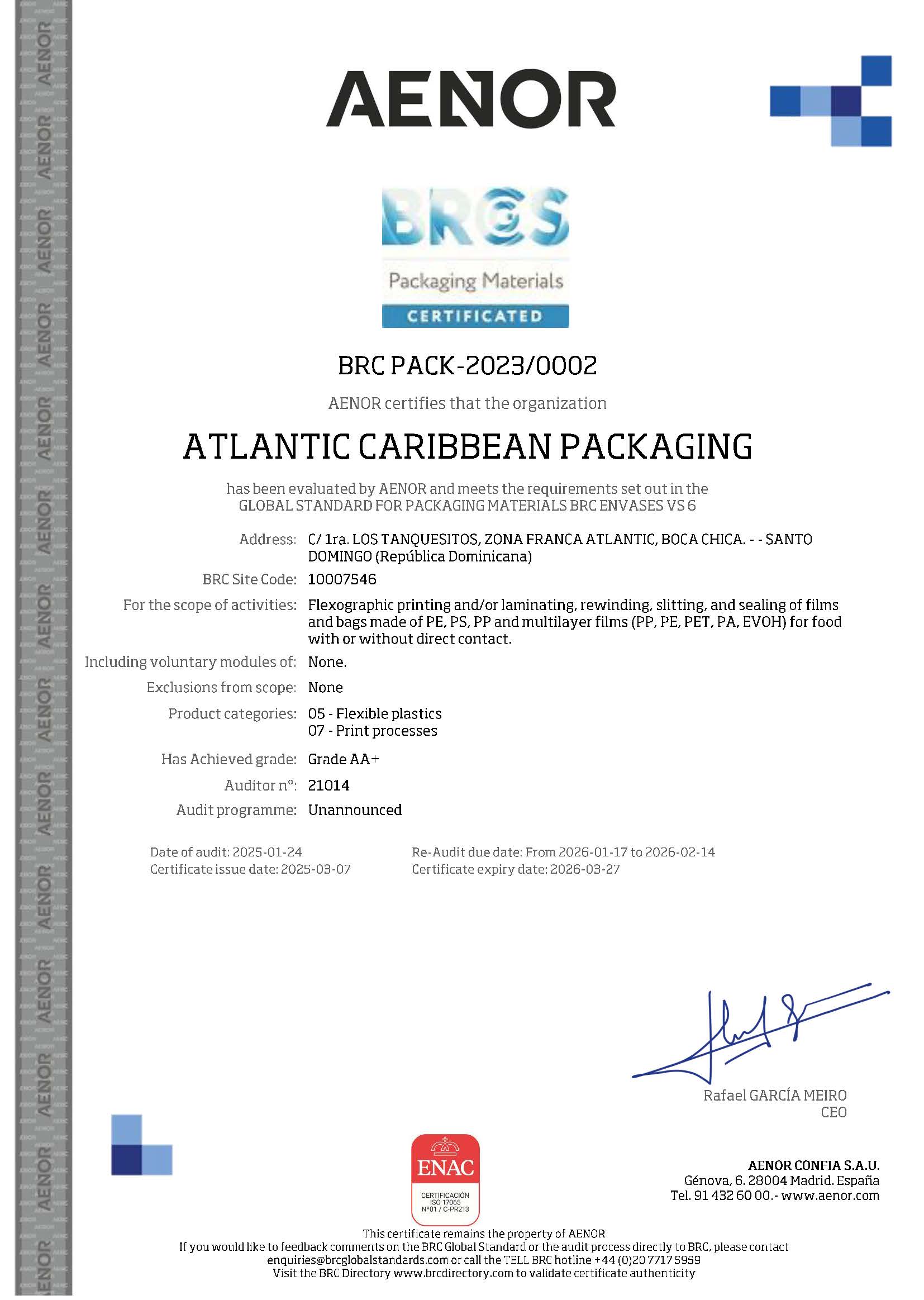 ATLANTIC CARIBBEAN PACKAGING – BRCGS PACKAGING MATERIALS CERTIFICATION
