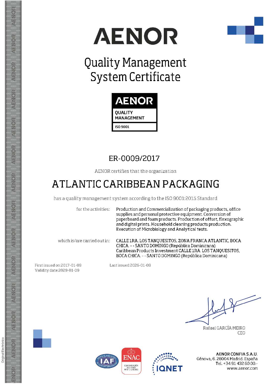 ATLANTIC CARIBBEAN PACKAGING – ISO 9001:2015 REGISTRATION